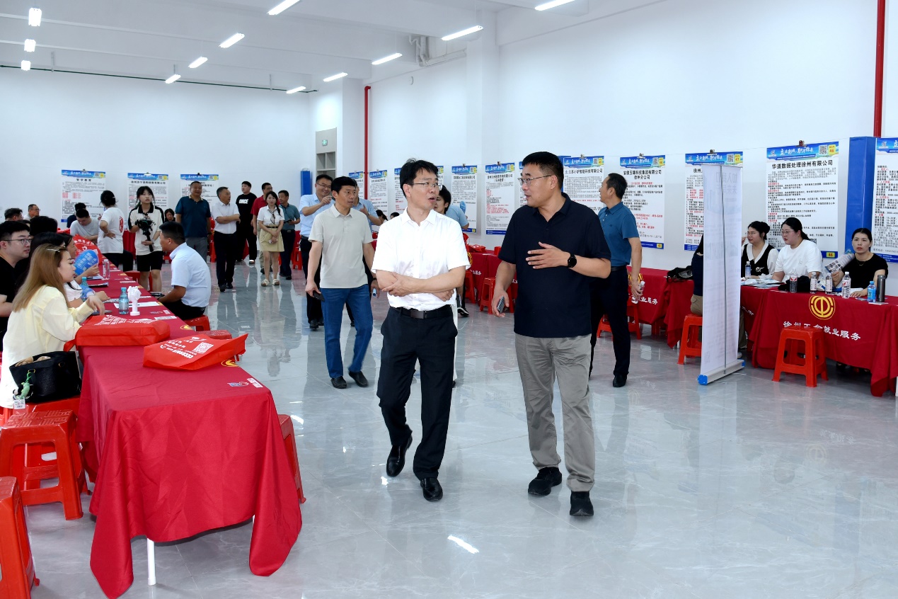 徐州市总工会党组成员、副主席徐涛,党组成员、高波主任,机关党委书记、教育工会主席魏义军莅临现场指导。校党委书记徐锋,党委副书记谭红玲,党委委员、副校长赵虎,党委委员、副校长强承魁出席现场,与用人单位和师生深入交流。