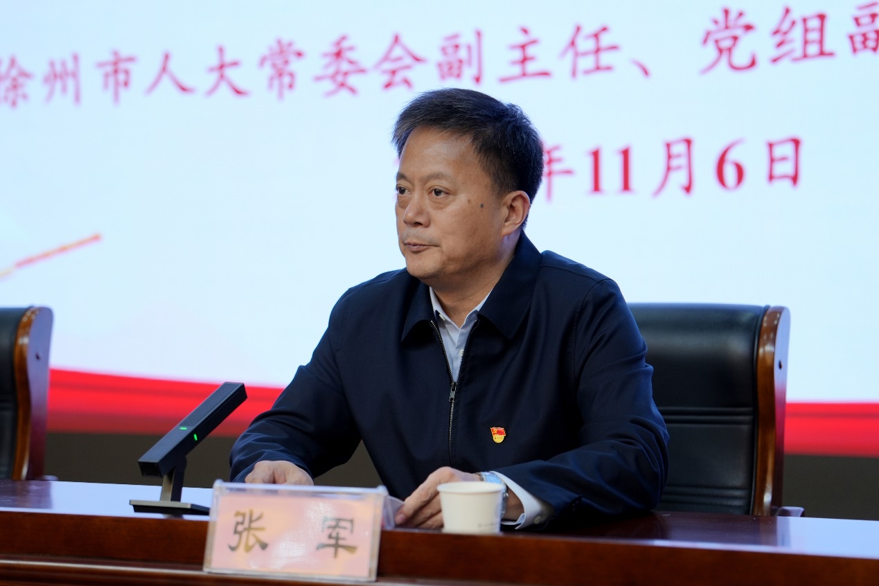 为深入学习贯彻党的二十届四中全会精神及习近平总书记关于加强高校思政课建设的重要指示精神,扎实推动领导干部讲思政课机制落地见效,11月6日,徐州市人大常委会副主任、党组副书记、一级巡视员刘广民以《在时代浪潮中锚定人生航向》为题,为我校师生讲授了一堂兼具理论深度、实践温度与时代高度的专题思政课。本次活动由我校党委副书记、校长张军主持,校党委副书记谭红玲,校党委委员、副校长赵虎,校党委委员、宣传部部长王冬,相关部门负责人和120余名师生代表现场聆听授课。